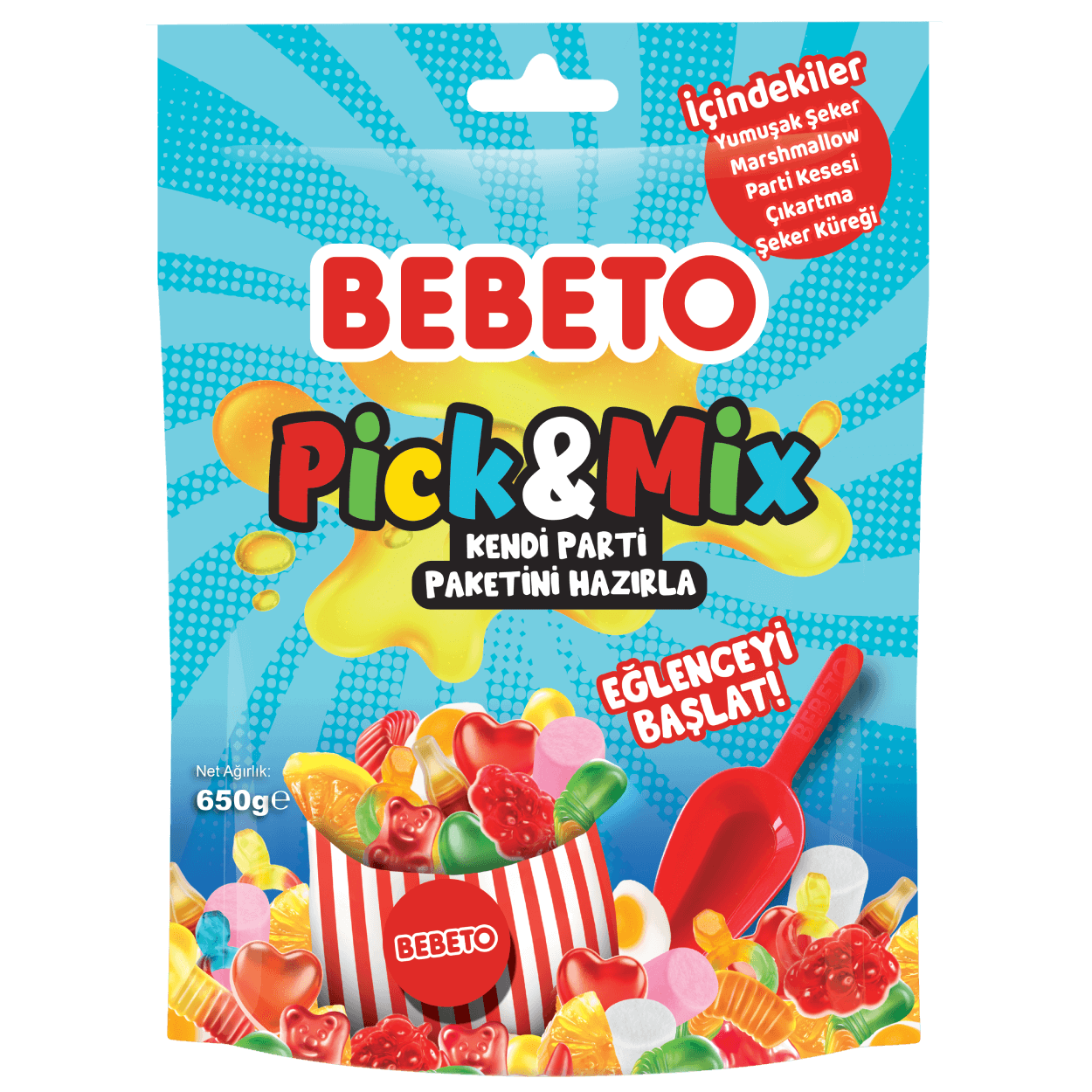 Glukoz Şurubu, Şeker, Mısır Nişastası, Sığır Jelatini, Elma Suyu Konsantresi, Asitlik Düzenleyici (Sitrik Asit), Palm Yağı, Aroma Vericiler, Meyve ve Sebze Suyu Konsantreleri (Elma, Turp, Frenk Üzümü, Siyah Havuç), Renklendiriciler (Sade Karamel, Kurkumin, Klorofilinlerin Bakır Kompleksleri, Paprika Ekstraktı), Parlatıcılar (Karnauba Mumu, Balmumu).